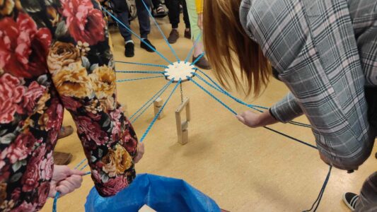 – Zabawa w układanie klocków za pomocą sznurków – nie lada wyzwanie! ![]()