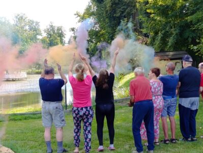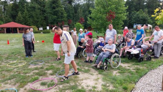 Jak co roku lato w naszym domu było pełne atrakcji, radości i niezapomnianych chwil. Zwiedziliśmy wiele pięknych miejsc i uczestniczyliśmy w wydarzeniach, które na długo pozostaną w naszej pamięci. Odwiedziliśmy zaprzyjaźnione DPS-y w całej Polsce – byliśmy na rajdzie w Łubcu, w Ostrołęce, Sadowej, Harmenii, Brańszczyku, w Obrytem, Kowalach Oleckich, Goślicach i wielu, wielu innych ciekawych miejscach! Braliśmy udział w wycieczce do Fabryki Wedla, byliśmy na Stadionie Legii Warszawa, w Muzeum Ziemi Błońskiej, Muzeum Iluzji, Kleks Magia Kina i Manufakturze Cukierków. Braliśmy udział w piknikach w Kampinosie i Błoniu, a także bawiliśmy się podczas niedzielnych koncertów w Grodzisku Mazowieckim. Każdy dzień przynosił coś nowego – spotkania, wyjazdy i okazje do wspólnej radości.
