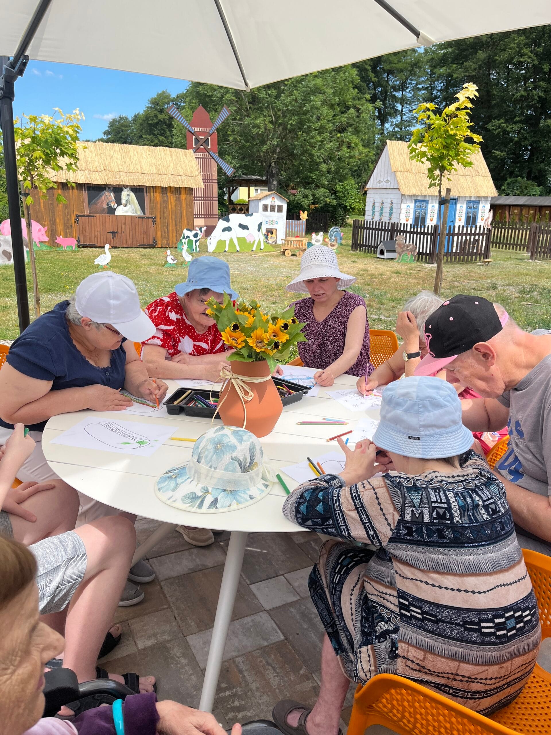 Jak co roku lato w naszym domu było pełne atrakcji, radości i niezapomnianych chwil. Zwiedziliśmy wiele pięknych miejsc i uczestniczyliśmy w wydarzeniach, które na długo pozostaną w naszej pamięci. Odwiedziliśmy zaprzyjaźnione DPS-y w całej Polsce – byliśmy na rajdzie w Łubcu, w Ostrołęce, Sadowej, Harmenii, Brańszczyku, w Obrytem, Kowalach Oleckich, Goślicach i wielu, wielu innych ciekawych miejscach! Braliśmy udział w wycieczce do Fabryki Wedla, byliśmy na Stadionie Legii Warszawa, w Muzeum Ziemi Błońskiej, Muzeum Iluzji, Kleks Magia Kina i Manufakturze Cukierków. Braliśmy udział w piknikach w Kampinosie i Błoniu, a także bawiliśmy się podczas niedzielnych koncertów w Grodzisku Mazowieckim. Każdy dzień przynosił coś nowego – spotkania, wyjazdy i okazje do wspólnej radości.